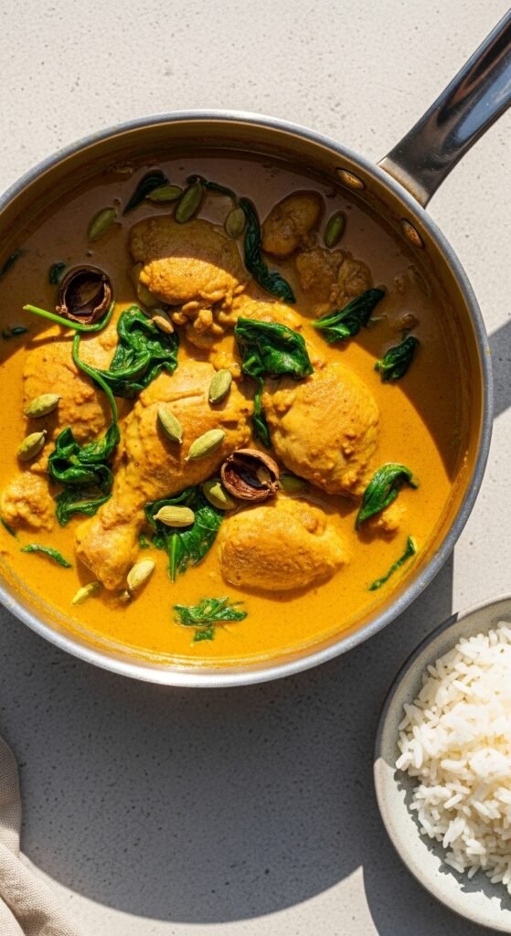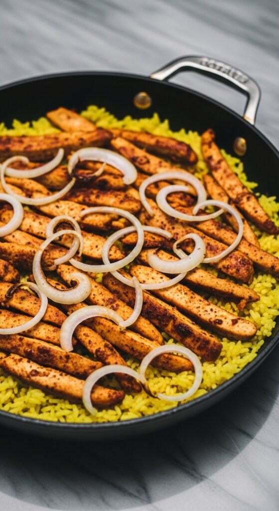Season chicken thighs with cumin, coriander, turmeric, garlic powder, and a pinch of cinnamon. Sear in a hot pan until caramelized. Remove chicken, cook rice in the same pan with broth and a pinch of turmeric. Add chicken back on top, cover, and simmer. All the spices are pantry staples. This dish has bold, layered flavor without any special ingredients. Serve with plain yogurt or a simple cucumber salad.