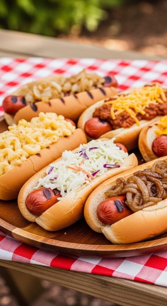 Boil hot dogs while toasting buns. Then get creative with toppings.