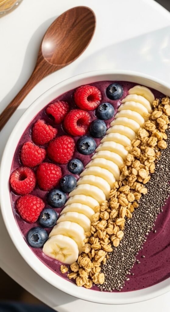 Blend frozen fruit with yogurt until thick. Pour into bowls. Top with granola, sliced banana, or whatever you have.