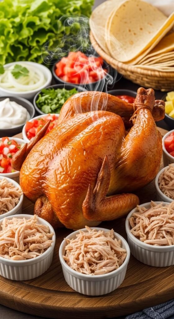 Evening reality: Shred the chicken with two forks. Serve in tortillas, over rice, or in bowls.