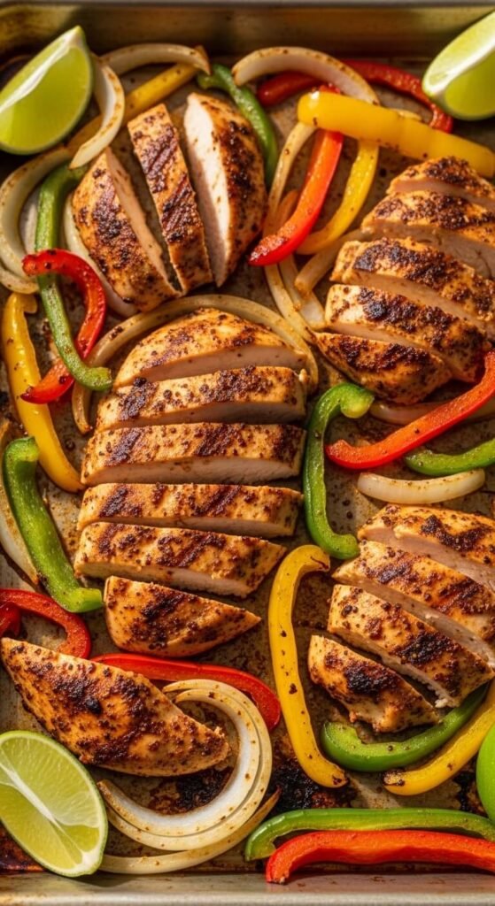 Serve in warm tortillas with your favorite toppings. Costs around $10 and tastes like restaurant fajitas. The chicken stays juicy and the vegetables get perfectly tender. Squeeze fresh lime over everything.