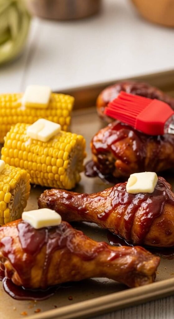 BBQ Chicken Drumsticks with Corn