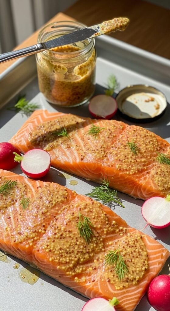 Dijon Salmon with Roasted Radishes