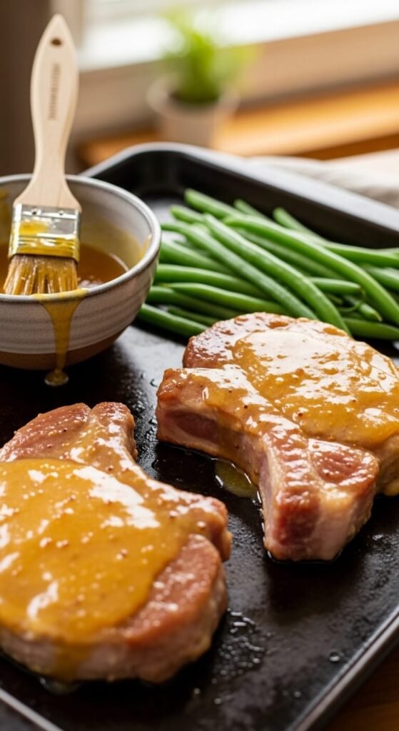Honey Mustard Pork Chops with Green Beans