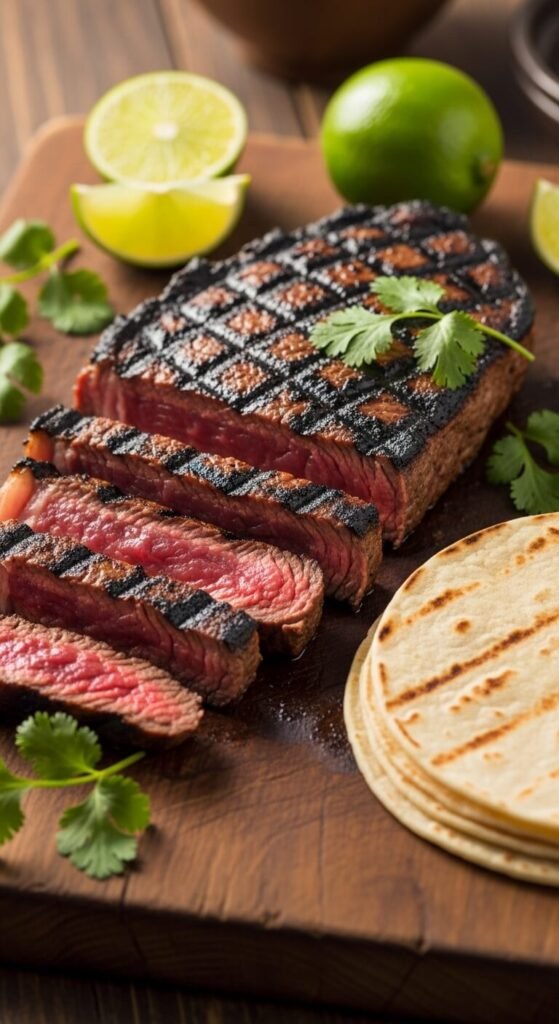 Marinate flank steak in lime juice, garlic, and cumin for 30 minutes. Grill or pan-sear for four minutes per side. Let it rest before slicing.
