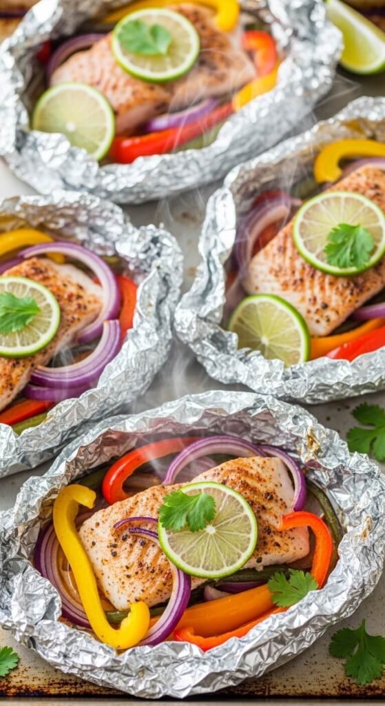 Open carefully—the steam is hot. Serve over rice or in tortillas. The fish stays moist and flaky inside the foil.
