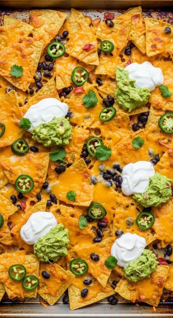 Add jalapeños, sour cream, and salsa when they come out. Let everyone grab from the pan family-style. No plates needed means easy cleanup.