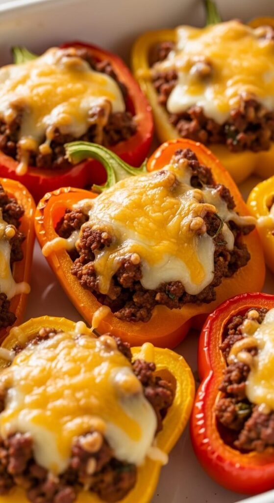 Cut bell peppers in half and remove seeds. Fill with cooked ground beef mixed with taco seasoning and rice. Top with cheese. Bake at 375°F for 25 minutes. Peppers cost about $1 each and create edible bowls. This turns regular tacos into something special. Kids think they’re getting stuffed peppers while you’re happy they’re eating vegetables.