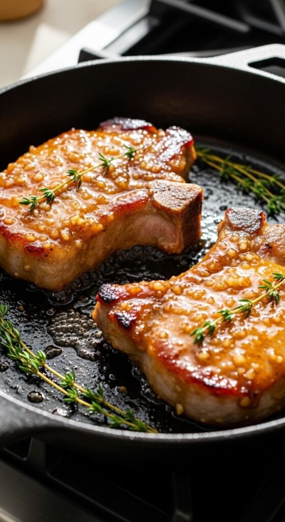 Season pork chops with salt and pepper. Sear in hot oil for 4-5 minutes per side until golden. While they cook, mix honey, soy sauce, and minced garlic. Pour sauce over cooked chops and simmer for 1 minute until sticky. Bone-in chops cost less and have more flavor than boneless. Don’t overcook or they get tough. Use an instant-read thermometer—145°F is perfect. Serve with rice or mashed potatoes to catch the sauce. This same glaze works on chicken thighs too.