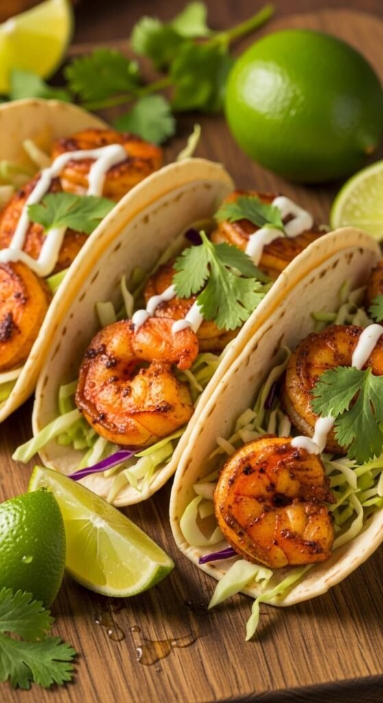 Season shrimp with Cajun seasoning or paprika, garlic powder, and cayenne. Cook in hot oil for 2 minutes per side. Warm tortillas. Fill with shrimp, shredded cabbage, and a drizzle of mayo mixed with lime juice. Add hot sauce if desired. Make your own taco seasoning to save money. Use pre-cooked frozen shrimp for even faster prep. Regular lettuce works if you don’t have cabbage. These taste like restaurant tacos at home. Set up a taco bar so everyone builds their own.