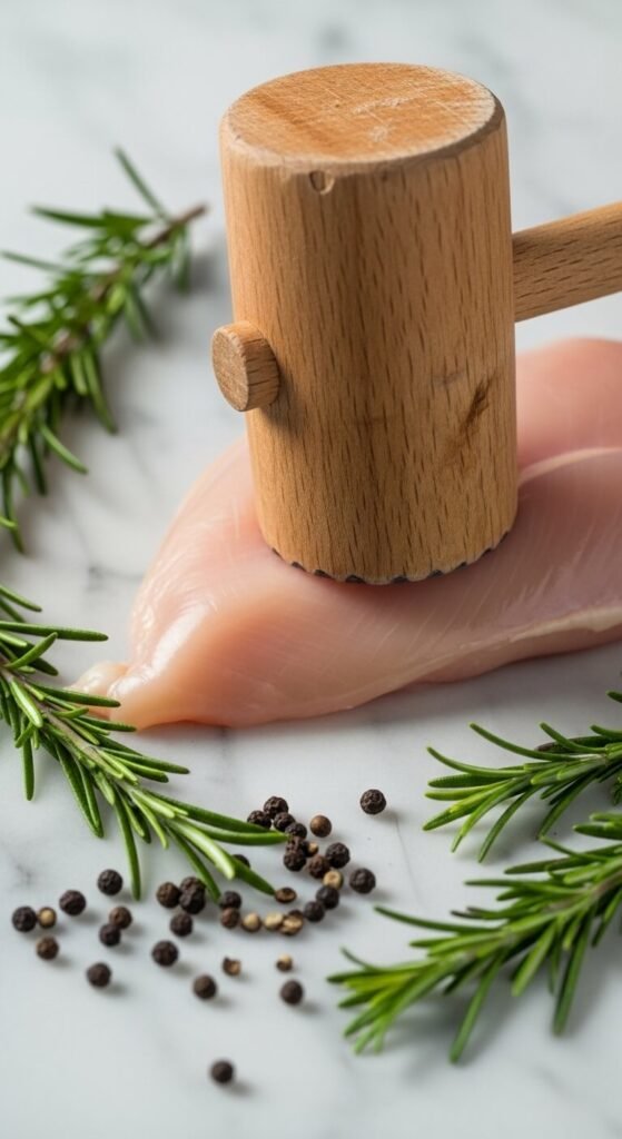 Chicken breasts are notoriously uneven — thick on one end, thin on the other. That means by the time the thick part is cooked through, the thin end is completely overdone.