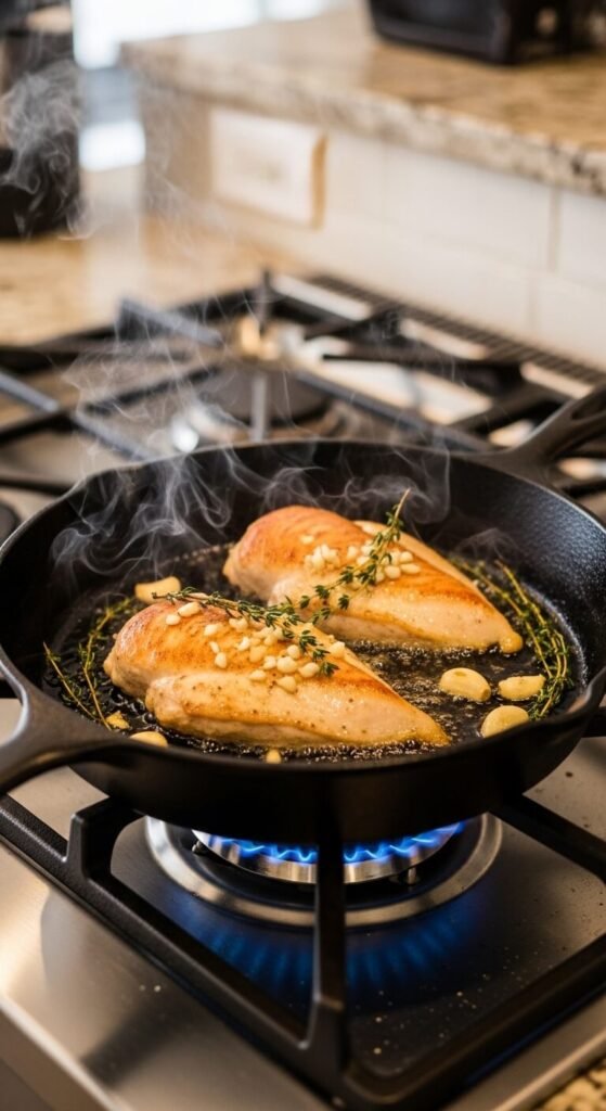 - Sear for 3–4 minutes per side until golden brown — don’t move it around.
