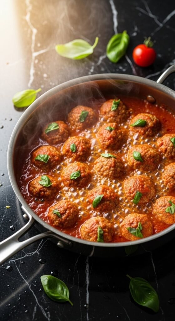 Option 3: Poach in Sauce Skip the browning entirely and drop raw meatballs directly into a simmering sauce. Cover and cook for 20–25 minutes. This method produces the most tender texture of all — no crust, but incredibly soft and flavorful.