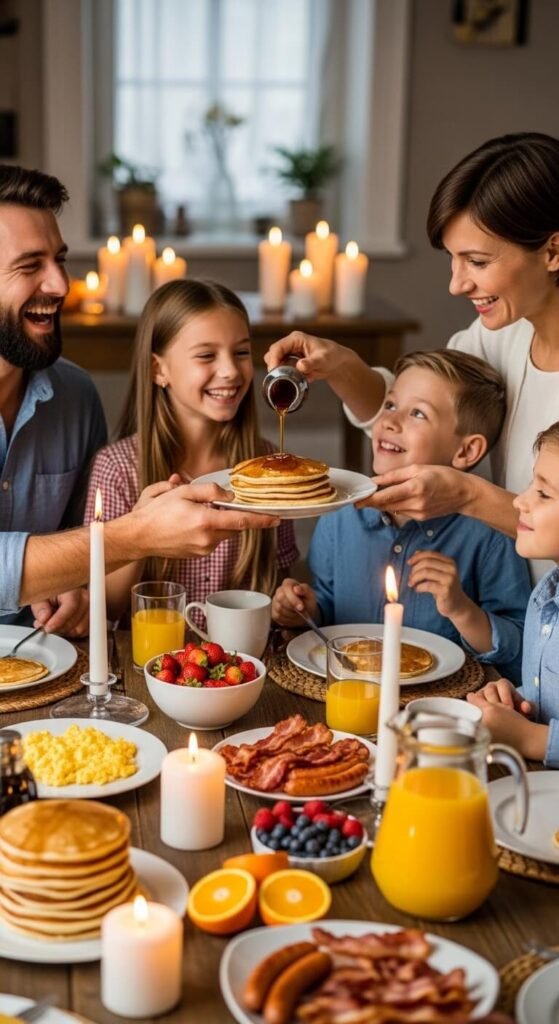 Involve the family. Let kids flip their own pancakes (safely!) or pick their omelet fillings. Brinner is inherently playful — lean into that energy.