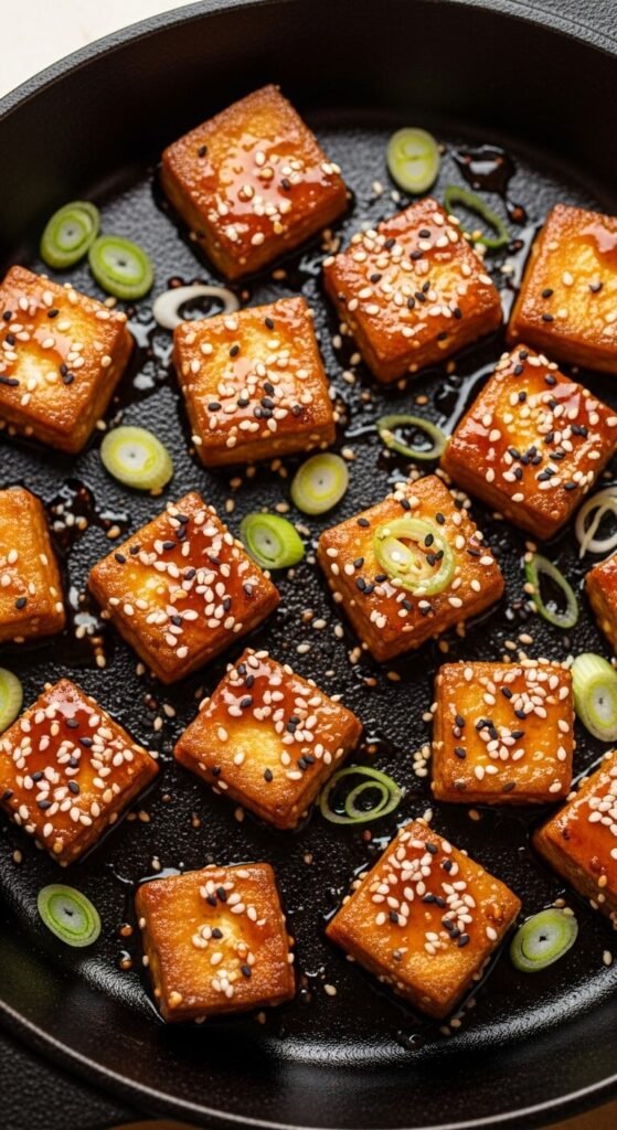 - Crispy tofu or tempeh tossed in soy sauce and sesame oil