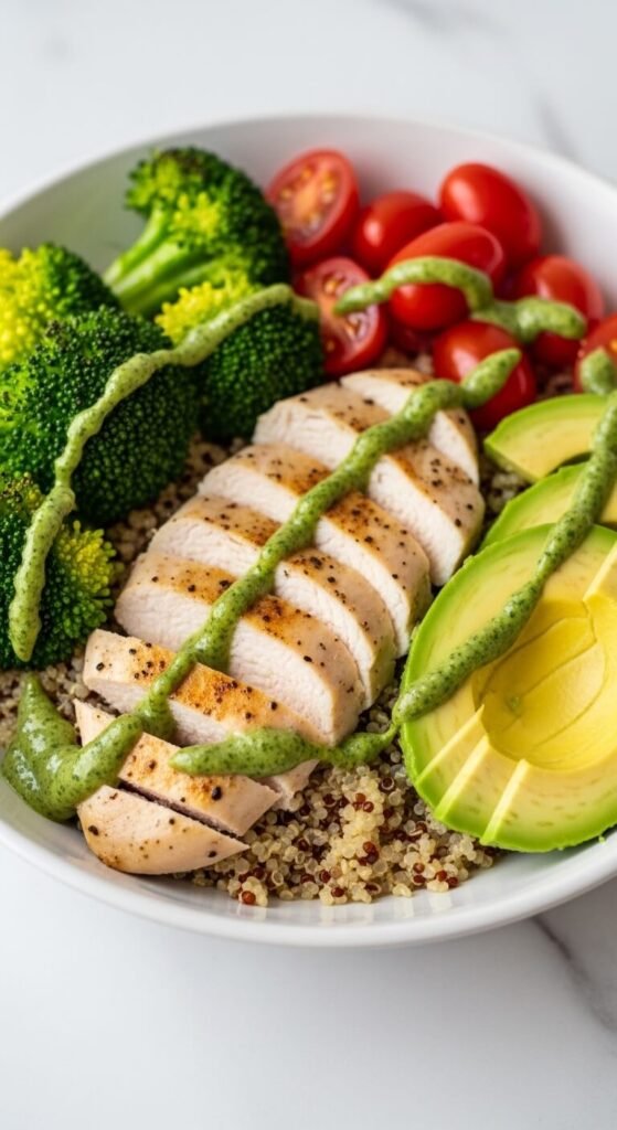 Season your protein boldly — this is not the time to be shy with spices. Smoked paprika, garlic powder, cumin, or a simple lemon-herb marinade all work beautifully.