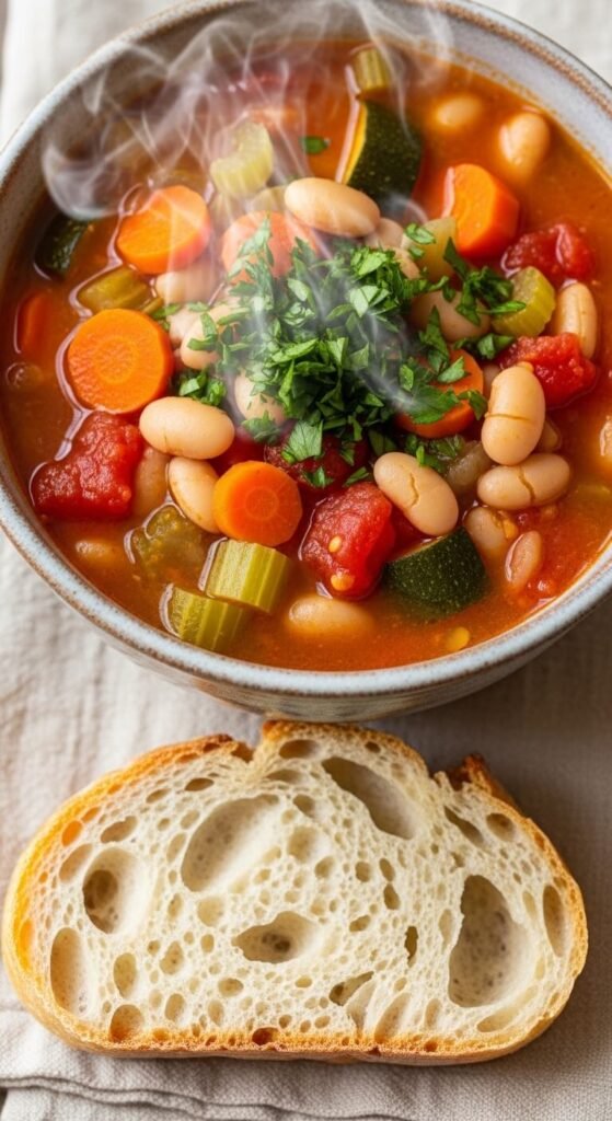 - Bean & Veggie Soup — Sauté onion and garlic, add canned tomatoes, broth, and two cans of beans, toss in greens. Filling, freezable, and costs about $2 per serving.