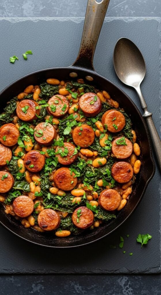 - Sausage and White Bean Skillet — hearty, rustic, and perfect for a cold night