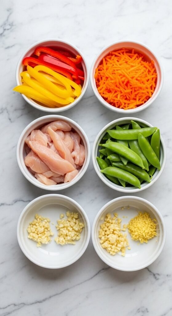 Mix it all together in a small bowl before you start cooking. Stir fry moves fast — you don’t want to be measuring anything mid-cook.