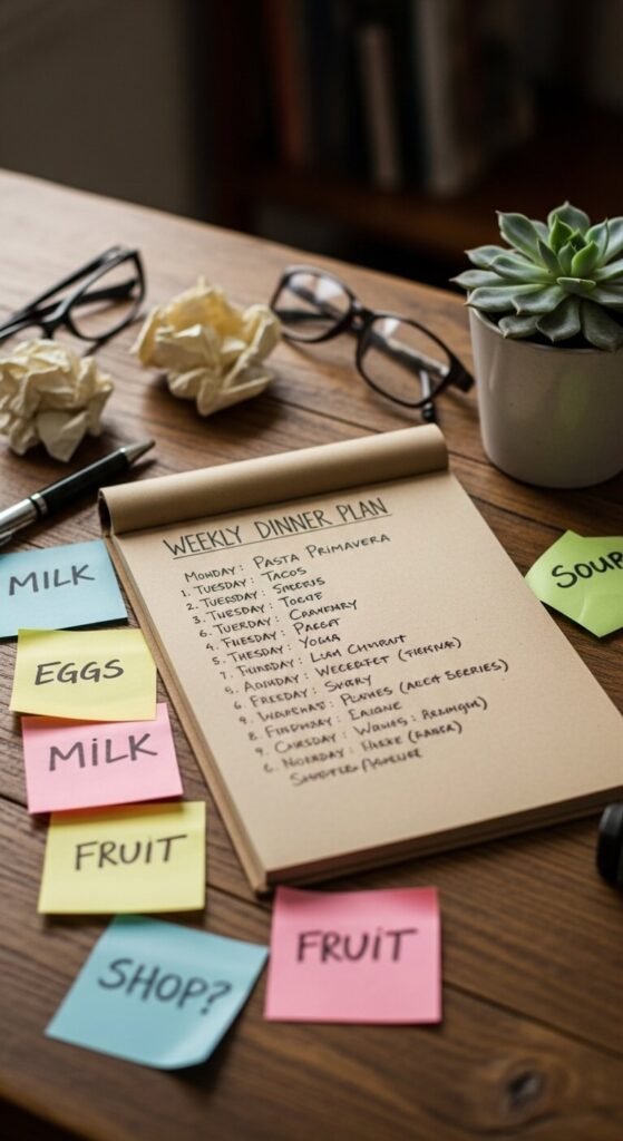 Weekly dinner planning isn’t about being a perfect homemaker — it’s about making your life easier and your evenings calmer. Start with just three planned dinners this week if five feels like too much. Build the habit slowly, and the rest will follow.